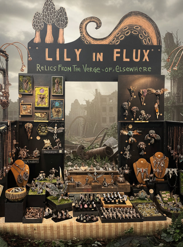 Every piece from Lily In Flux is made using several different techniques, including soldering, copper electroforming, oxidizing, and polishing. The result is a distinct, modern relic-like aesthetic.