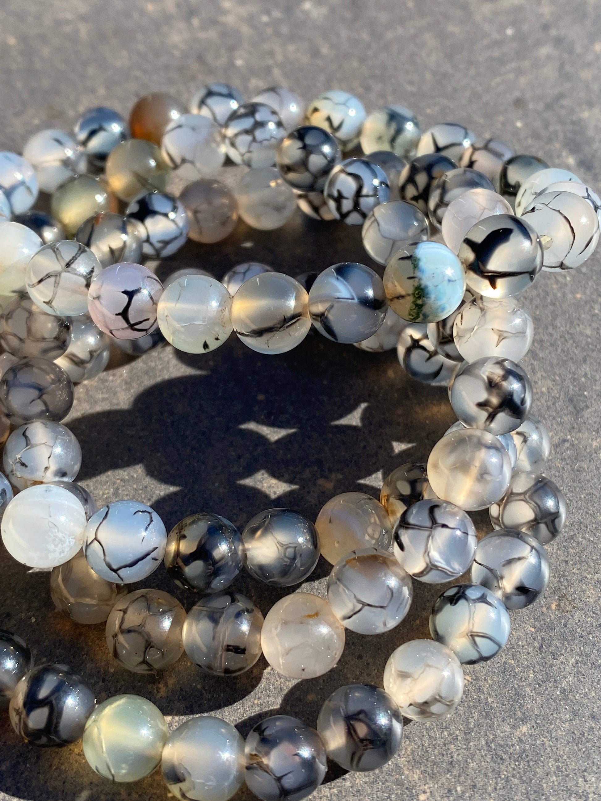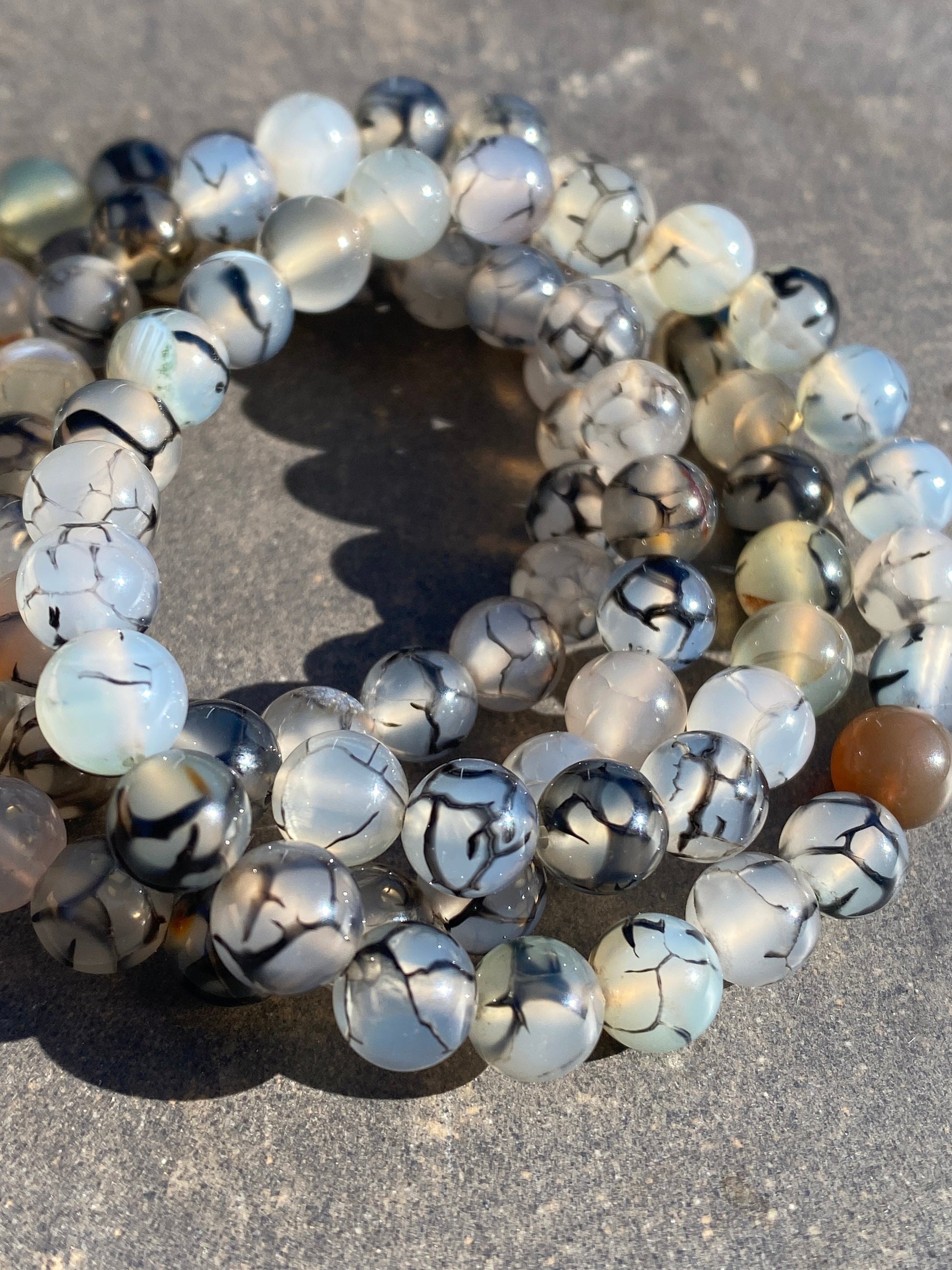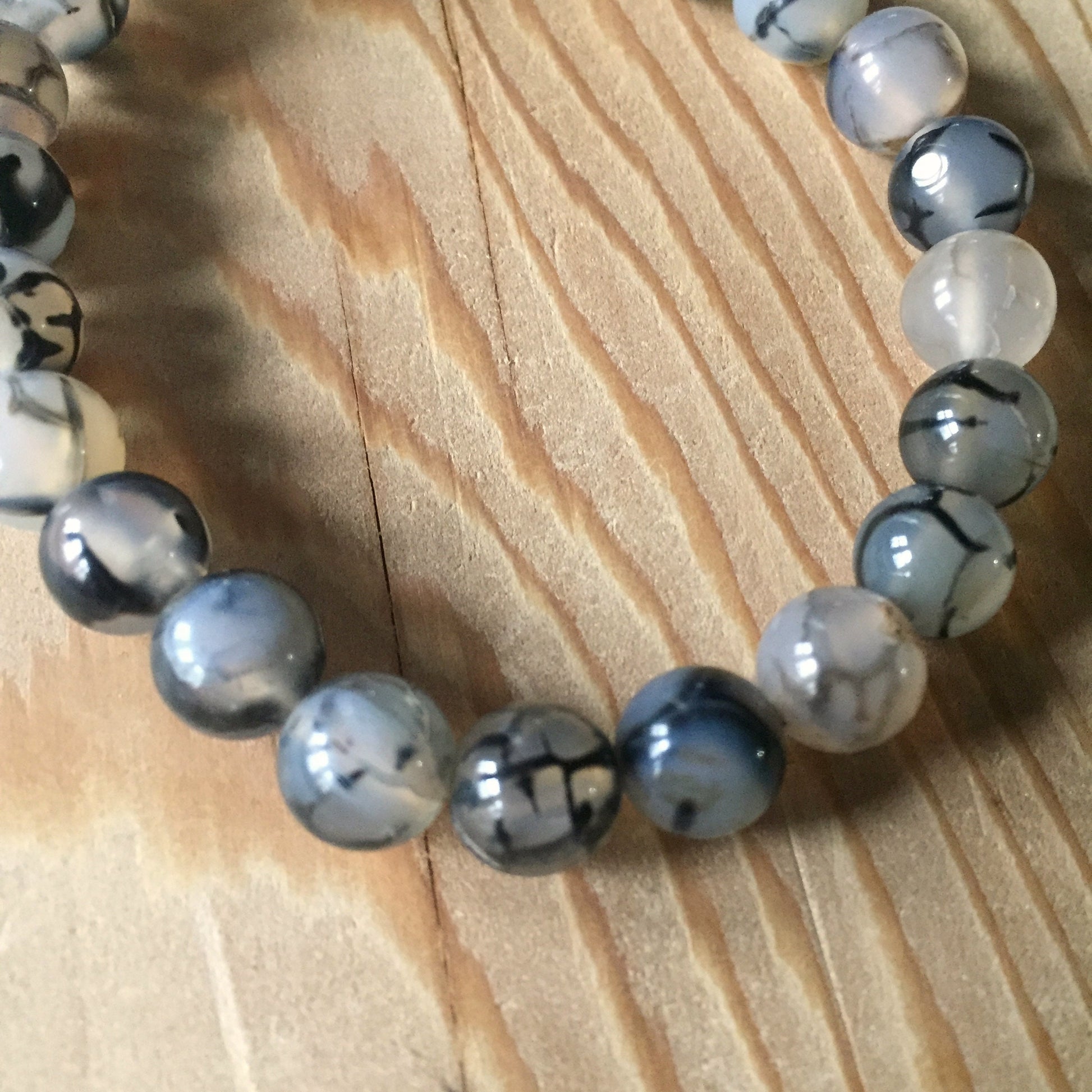 ZZ Bracelet ~ 8mm Crackled Agate Beaded Bracelet ~ Stretchy Stone