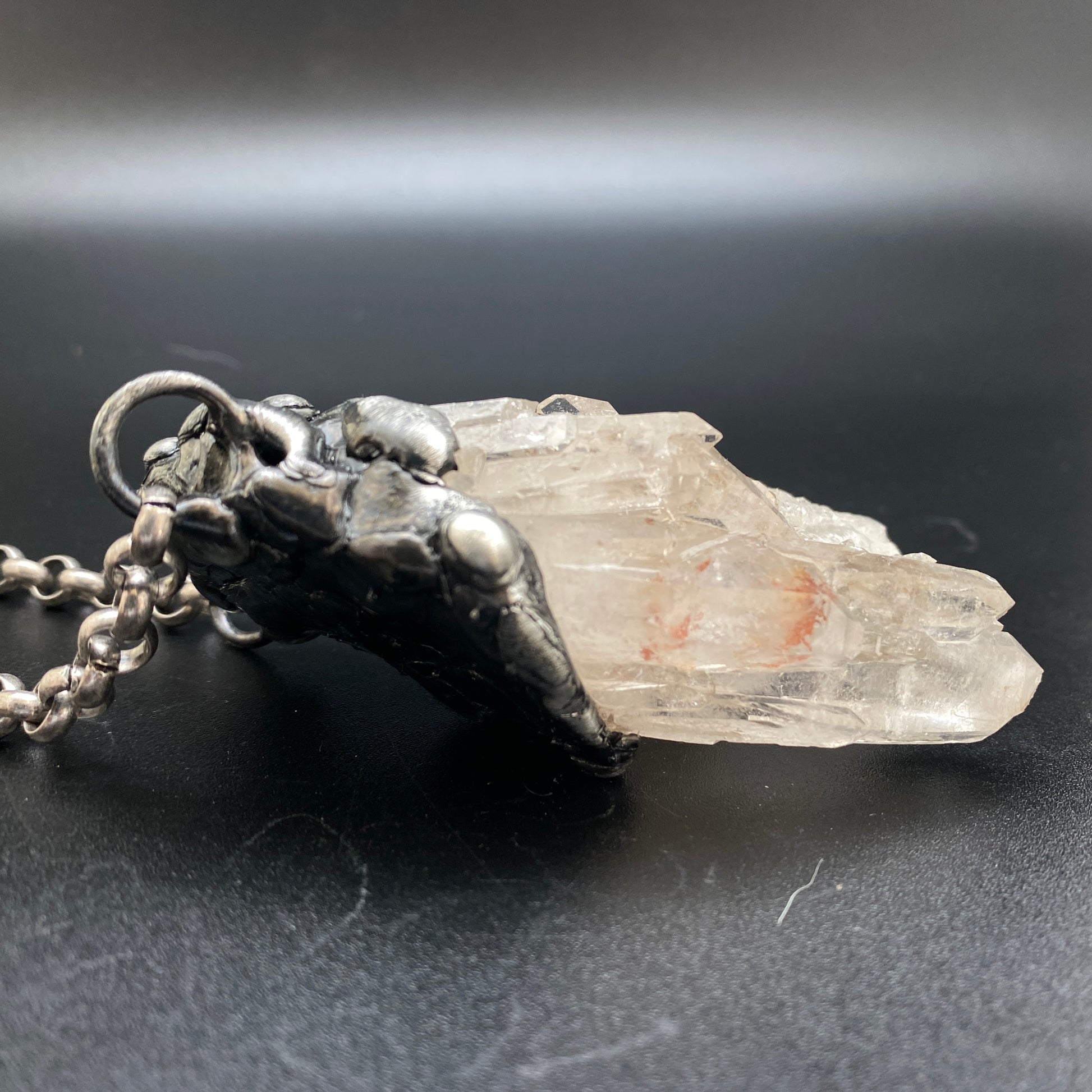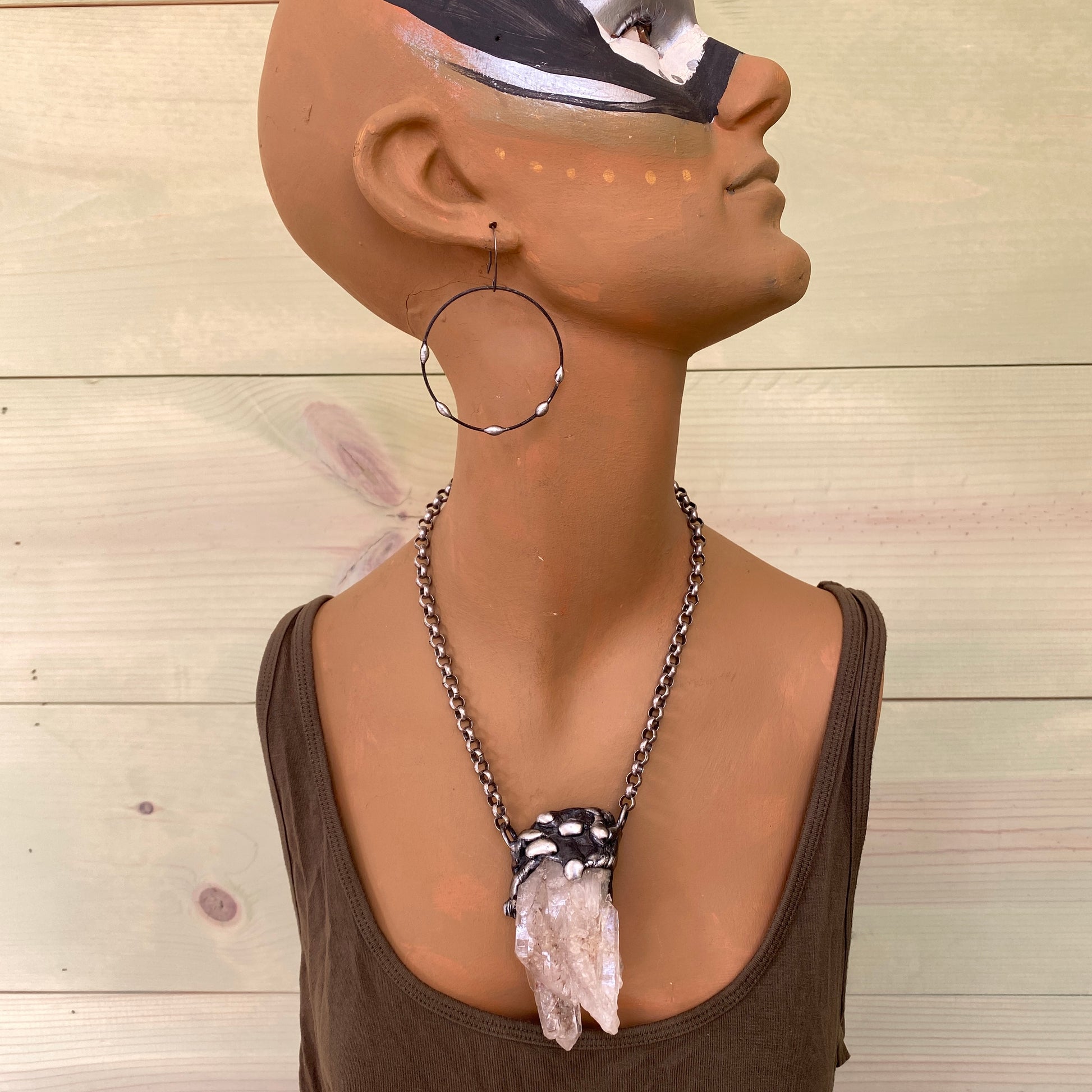 A cluster of clear Quartz soldered and oxidized with my signature technique. On heavy gauge silver plated chain. One of a kind