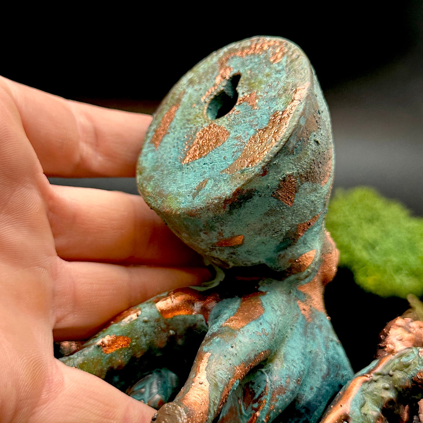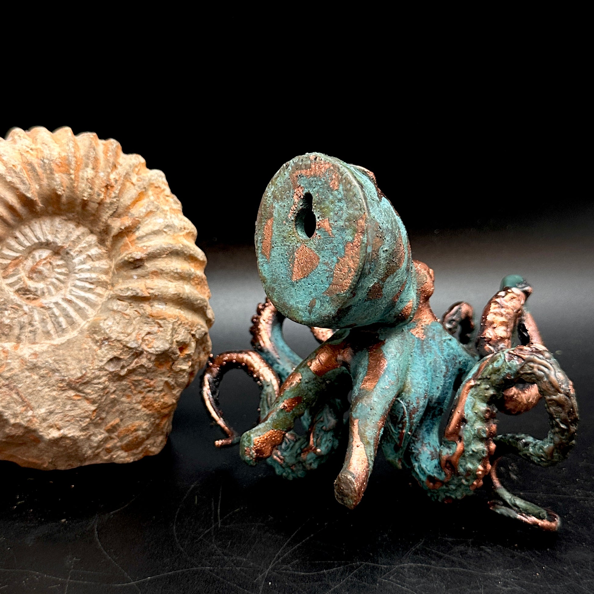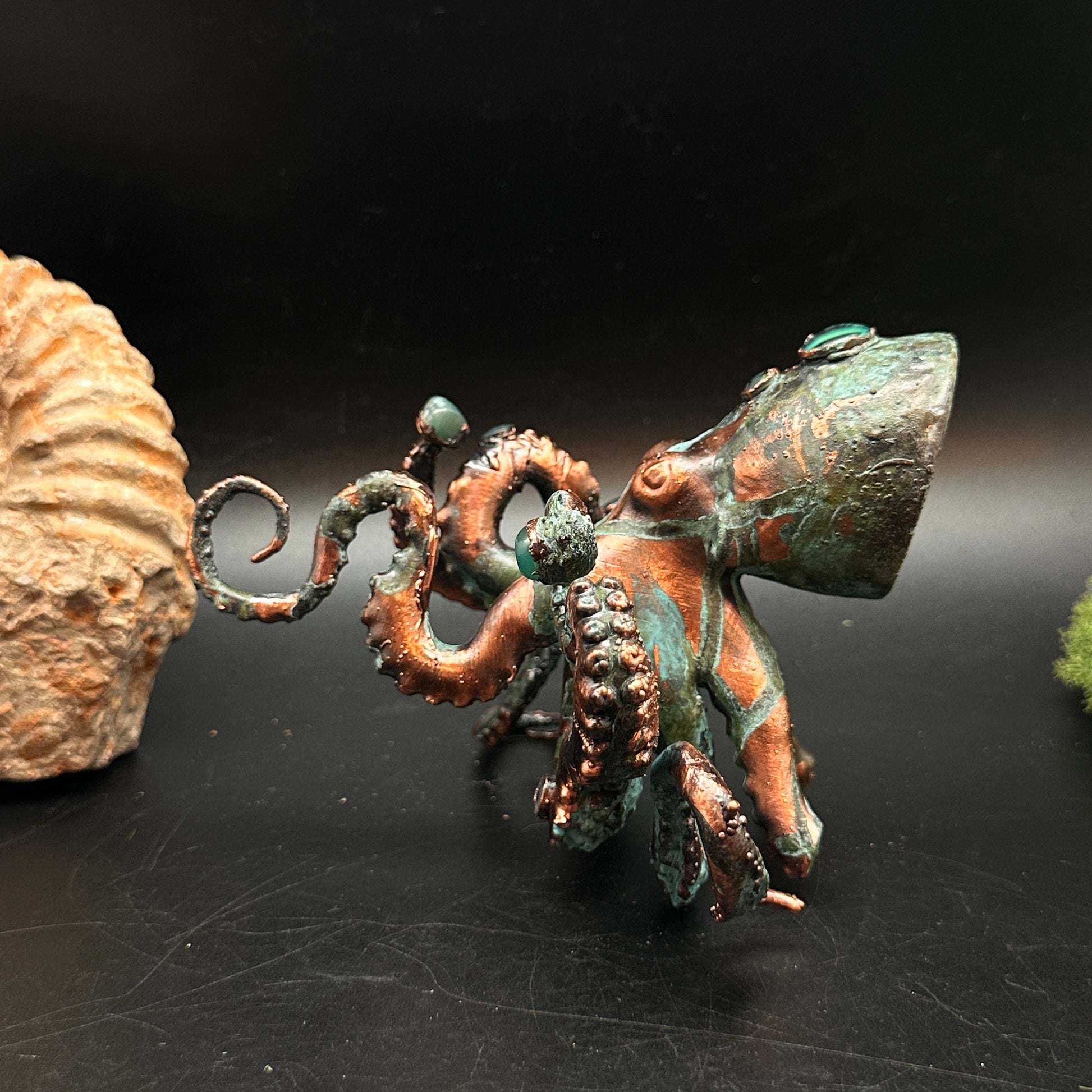 A curly wall mounted octopus adorned with agate, abalone, and third eye. *it can also sit on a tabletop or shelf.