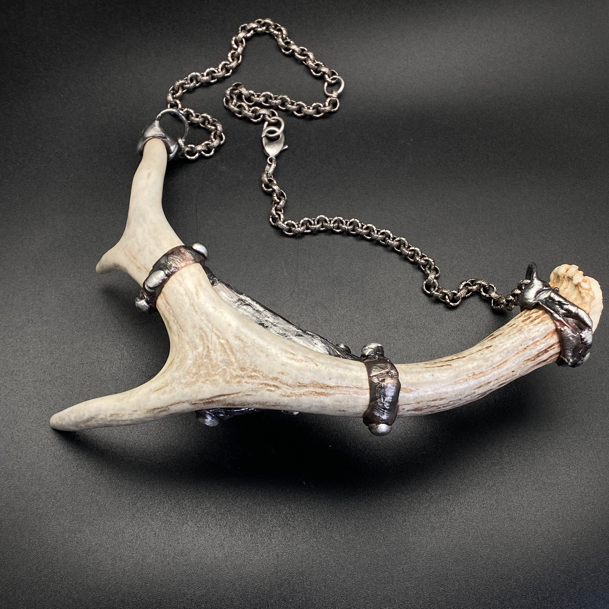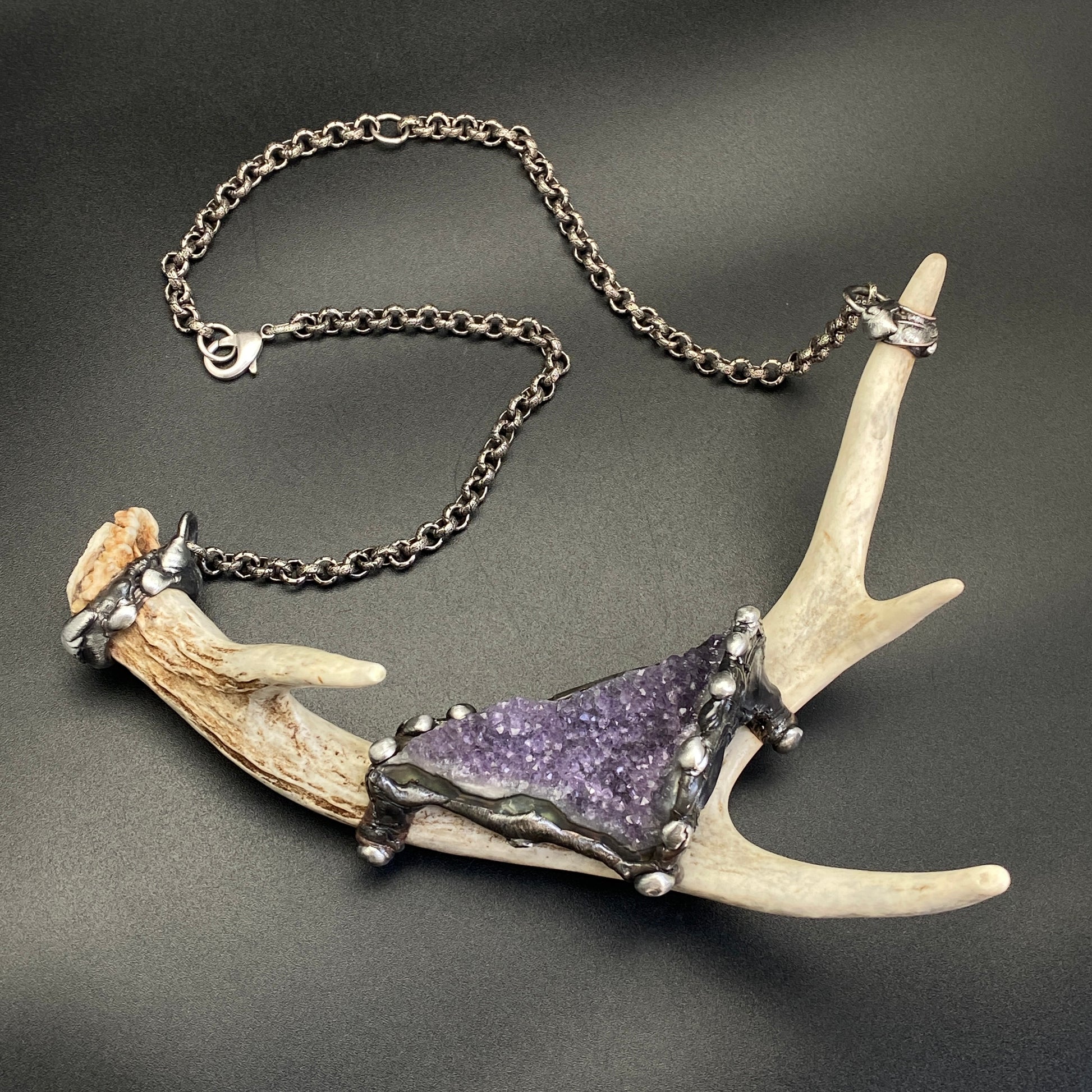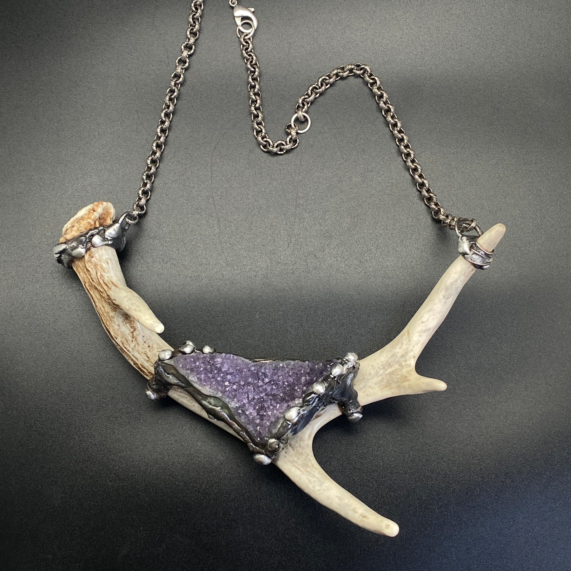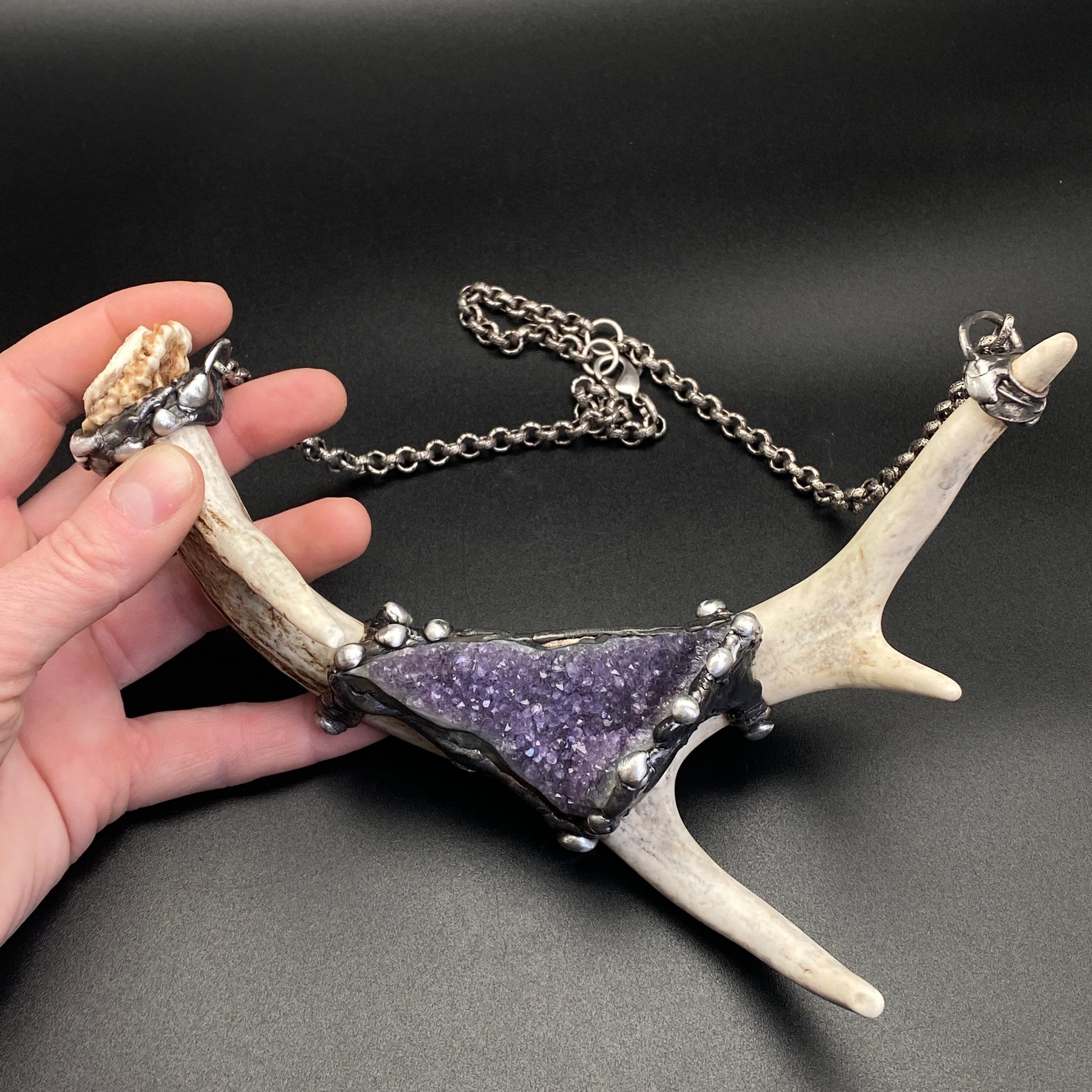 Ødjer ~ Antler & Amethyst Druzy Crystal Necklace